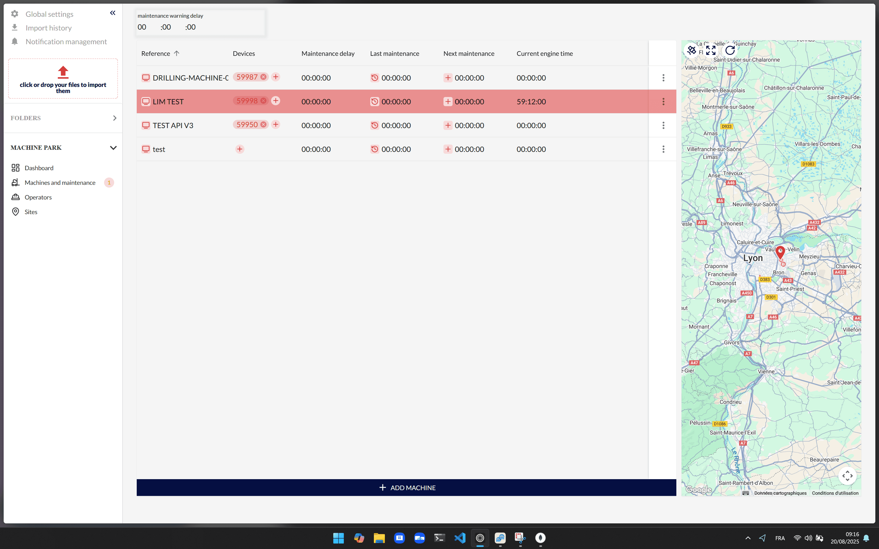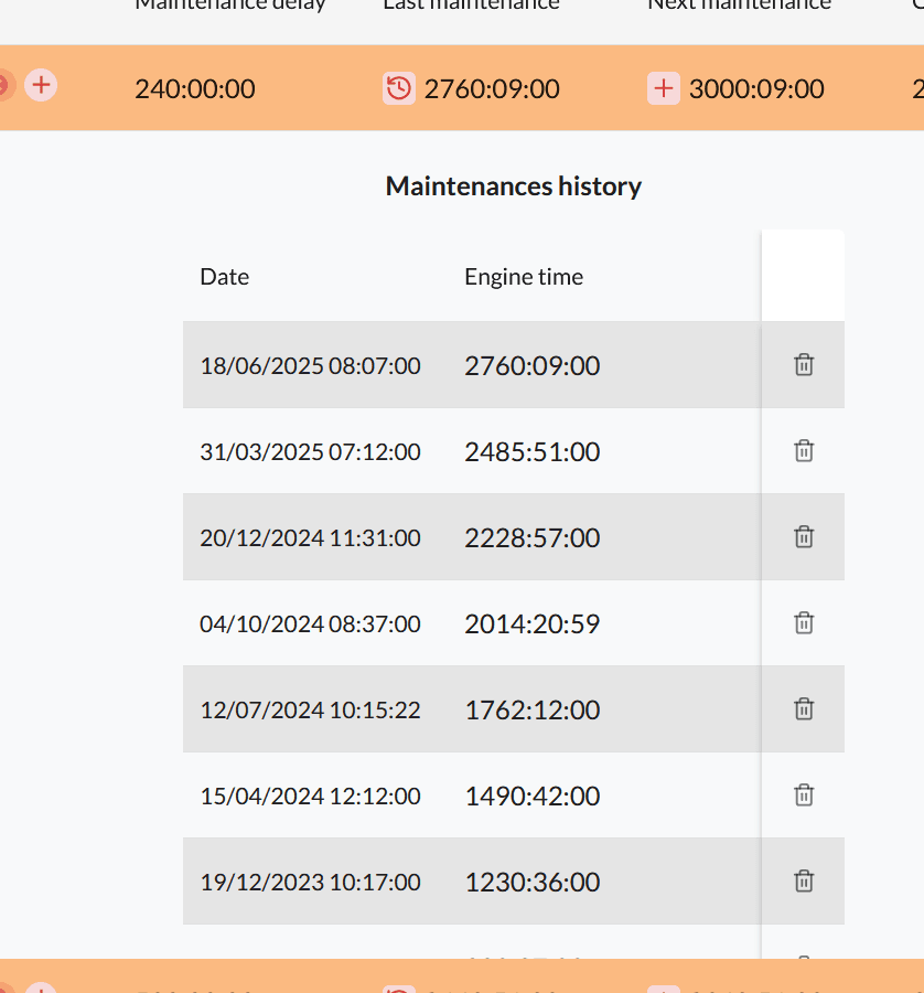 During the creation of your machine or when editing it, you must set your machine's maintenance delay. This delay is a critical parameter that determines when maintenance is due. Once set, you will begin to notice that some machines have their rows colored either in orange or red.