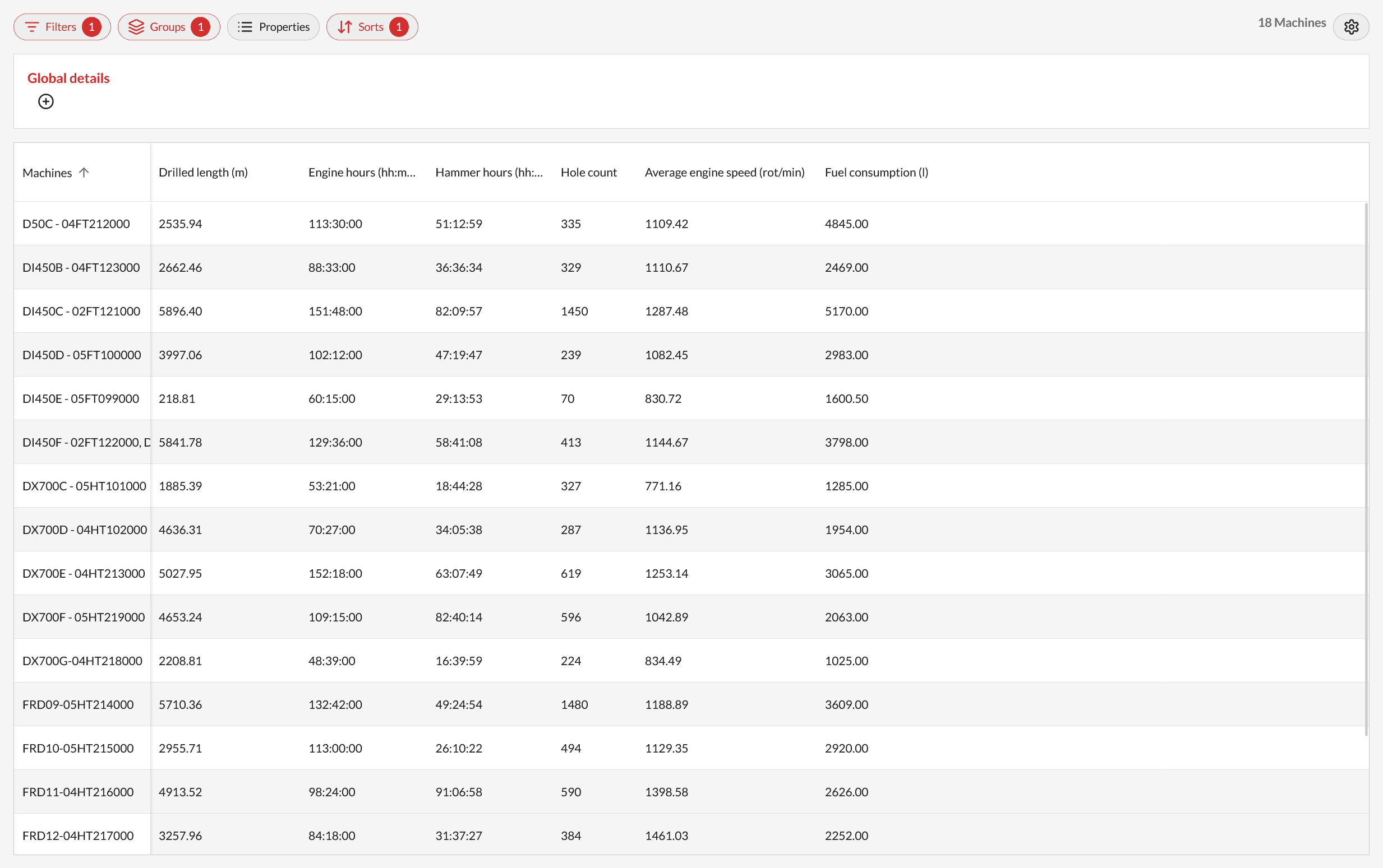 This pre-configured sheet allows you to view the production output of each machine from the previous month. To access this data, we have grouped the information by machine and applied dynamic filters on timestamps to ensure they always reflect the previous month. As a result, the sheet will automatically update each month to display the latest production figures.